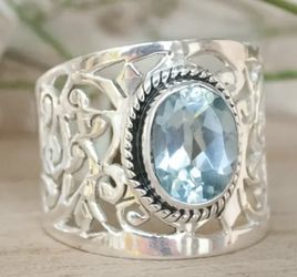 Bohemian Vintage Style Created Aquamarine Ring Sizes 7/ 8/ 9/10/12$25Benton, KY