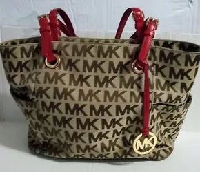Michael Kors Jet Set Signature Fabric Red Handles Tote Bag-$40Henderson, NV