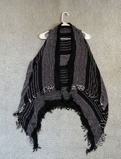 Kensie Black/White Women's Chunky Knit Fringe Sleeveless Open Cardigan Size Medium$5Anaheim, CA