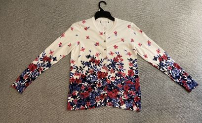 White Floral Women's Button Up Crewneck Sweater Size US PM$3Fullerton, CA