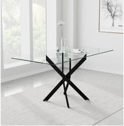 NIERN 47” Glass Dining Table Black Metal X Legs Modern 47x27 Kitchen Home Room$190Concord, CA