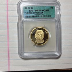 “REDUCED “ Professionally Graded 2007-S Thomas Jefferson $1 - PR70 DCAM$10Ellicott City, MD