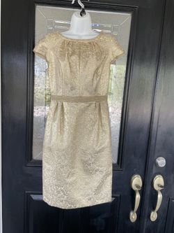 Designer Carmen Marc Volvo Gold & White Brocade Cocktail Dress$50Agua Dulce, CA