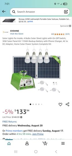 Solar Light Kit 30W — 4 LED Bulbs + Battery Pack — AS-IS $75 OBO!$75Fort Lauderdale, FL