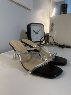 Glaze Women's Crystal Rhinestone Ankle Strap Sandals, Clear 4.5 Inch Block Heel$10Washington, DC