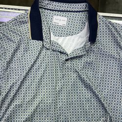 Day & Age Men’s Blue Geometric Polo with Navy Contrast Collar$20Woodmere, NY