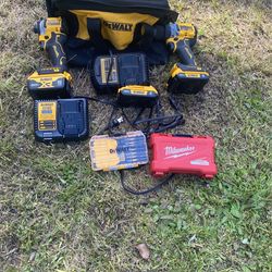 Dewalt tools, drill compact drill, two battery chargers three batteries 20 V with the set of the wall tools that he hast to drill also a Dewalt bg and$350Fresno, CA