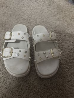 Cream and gold studded Aldo sandals #glamour$30Silver Spring, MD