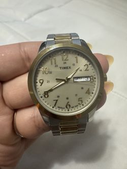 Timex two-tone watch with gold and silver tones, featuring a 40mm case, 20mm band, and 10 ATM water resistance #Timex #TwoTone #Watches$25Silver Spring, MD