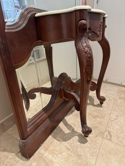 Elegant Vintage Vanity Table with Tall Mirror โ Solid Wood & Marble Top$299Mission Viejo, CA