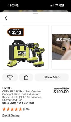 Brand New Ryobi 18v HP Compact 1/2 Inch Drill & Impact Driver Set w/2 Batteries & 1 Charger$100Bolingbrook, IL