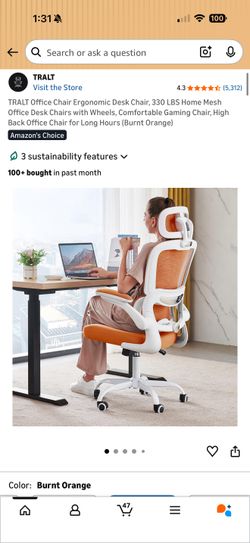 Brand New Orange/White Mesh Tall Back Ergonomic Office Chair w/Flip Up Arms & Adj. Lumbar$75Naperville, IL