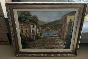 Framed Mediterranean Coastal Village Wall Art - Large Statement Piece$80Arlington Heights, IL