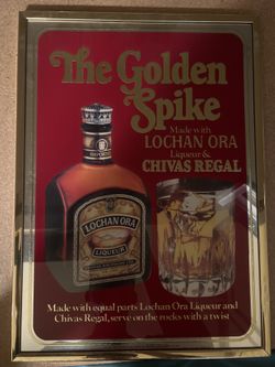 Vintage Lochan Ora & Chivas Regal “Golden Spike” framed mirror bar sign. Classic imported Scotch/liqueur advertising mirror with bold red and gold de$160San Pedro, CA