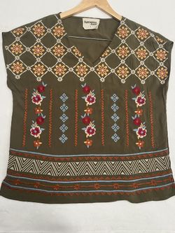 Savanna Jane Embroidered Pullover Top L Green Boho Peasant Hippie Shirt Blouse $25San Antonio, TX