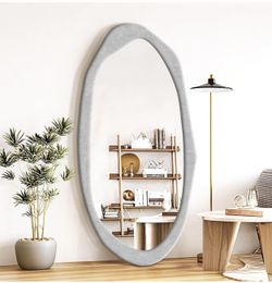 Irregular Asymmetrical Wall Mirror, 48" x 24" Flannel Wrapped Wooden Frame Frame Mirror for Living Room Bathroom Entryway, Hanging or Leaning Against $55Elk Grove, CA