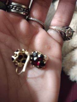 18kt 10mm Halo Garnet Earrings $500Anderson, CA