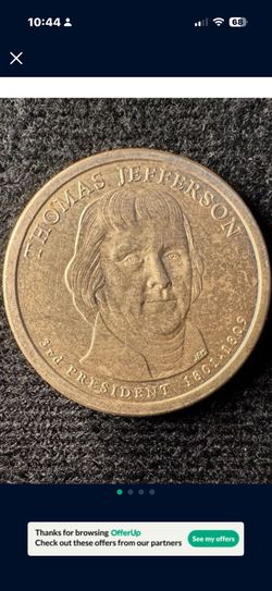RARE-2007-P $1 Thomas Jefferson Position A Presidential Dollar coin. It features a composition of 88.5% Copper, 6% Zinc, 3.5% Manganese, and 2% Nickel$45Naples, FL
