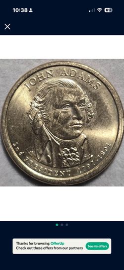 2007 Rare D John Adams 2nd President. $1 dollar Coin Off Center Strike Ultra Rare!!!😎$55Naples, FL