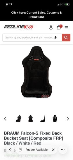 BRAUM Falcon-S Fixed Back Bucket Seats [Composite FRP] Black / White / Red$750Apple Valley, CA
