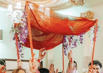Indian Wedding Phoolon Ki Chadar – Red & Gold Bridal Entrance Canopy with Floral Decor MOVING OUT SALE$50Frisco, TX