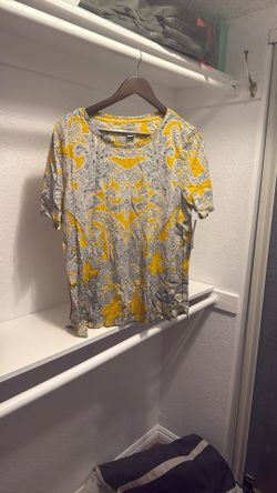 NWT Chico’s Paisley Sun Side Vent Tee – Bright Ochre – Size 2$30Riverside, CA