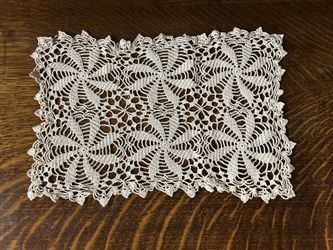Vintage Handmade Crochet Lace Doily - 14.5" x 9.5" Pinwheel Motif - Ecru$10San Francisco, CA