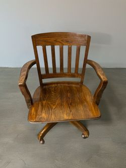 Vintage Solid Oak Banker’s Swivel Desk Chair – Mid-Century Office Classic$75San Bruno, CA