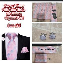 👔New! Sale Barry Wang Pink and Blue Check Silk Necktie Set- ) reseda ca$20Los Angeles, CA