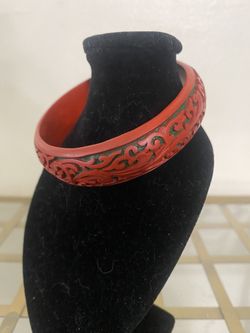 Chinese Antique Victorian Era Carved Bracelet In Red Lacquer Cinnabar Wood$150St. Petersburg, FL