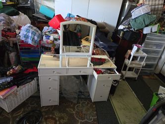 Dresser Pristine White With Glass Surface & Attached LED lighted Mirror w/ Stool - Like New, Beautiful White!!$299Campbell, CA
