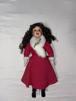 Vintage Porcelain Doll – 19” Collectible Doll – Red Dress with Faux Fur Trim & Brooch$40Escondido, CA