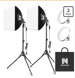Softbox Lighting Kit, NiceVeedi 2-Pack 16'' x 16'' Softbox Photography Lighting Kit with 63” Tripod Stand & 5400K 450W Equivalent LED Bulb, Continuous$60Oak Lawn, IL