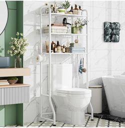 Over The Toilet Storage Rack, Metal 3 Tier Bathroom Organizer Shelf with Paper Holder and 3 Hooks, Freestanding Shelf Space Saver Above Toilet, White$40Oak Lawn, IL