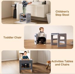 Table and Chair Set for Toddler and Baby, Kids Table and Chair Set- Solid Wood Toddler Furniture with Adjustable Height, Step Stool, for 1-3 Year Old $50Oak Lawn, IL