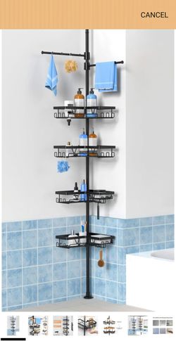 Black Shower Caddy Tension Pole with 2 Towel Bars, Adjustable Corner Bathroom Organizer, Rustproof Bathtub Storage Shelves for Shampoo, 25–114.2 Inch $40Oak Lawn, IL