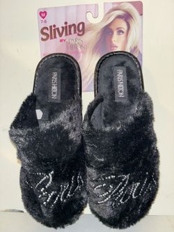 Paris Hilton Black Fluffy Rhinestone M 7-8 Slippers$26Atlanta, GA