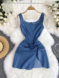 Iamdoyleyboutique: Puss Flower Appliques Dress Woman Summer Sexy Splits Sleeveless Available In Large$30Essex, MD