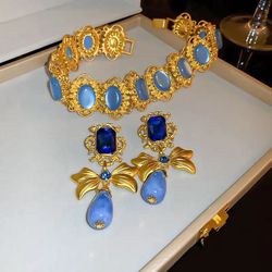Iamdoyleyboutique: Vintage Rhinestone Geometric Bowknot Water Drop Earring French High Quality Chokers Necklace Set $30Essex, MD