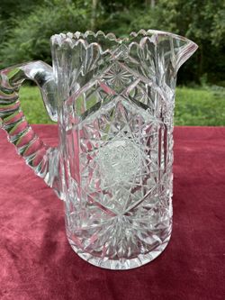Vintage Heavy Cut Crystal Water Pitcher with Swirls, Sunburst Star and a Sawtooth Pattern$30Mint Hill, NC