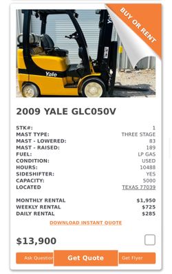 Yale GLC050V Forklift $13,900Houston, TX