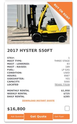 Hyster S50FT Forklift $16,800Houston, TX