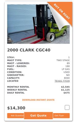 Clark CGC40 Forklift $14,300Houston, TX