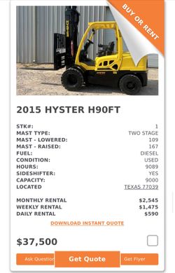 Hyster H90FT Forklift $37,500Houston, TX