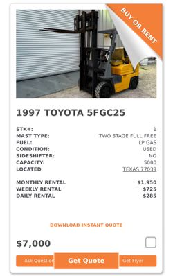 Toyota 5FGC25 Forklift$7,000Houston, TX