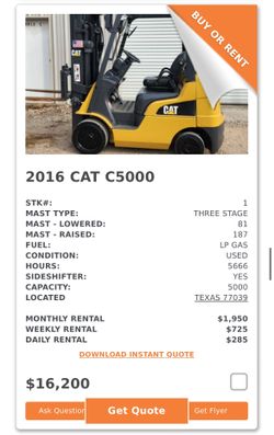 Caterpillar C5000 Forklift $16,200Houston, TX