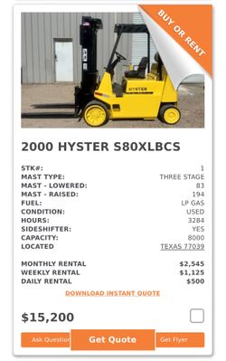 Hyster S80XLB Forklift $15,200Houston, TX