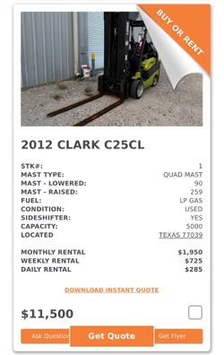 Clark C25CL Forklift$11,500Houston, TX