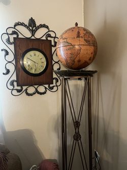 Metal Stand And Antique Globe And Metal Clock$150College Station, TX