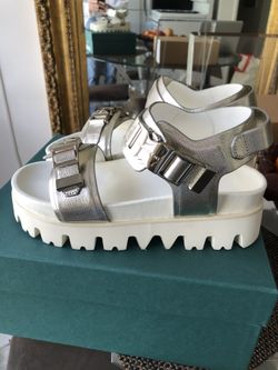 Buscemi Women’s Silver Leather Platform Buckle Sandals Size 39$175Los Angeles, CA